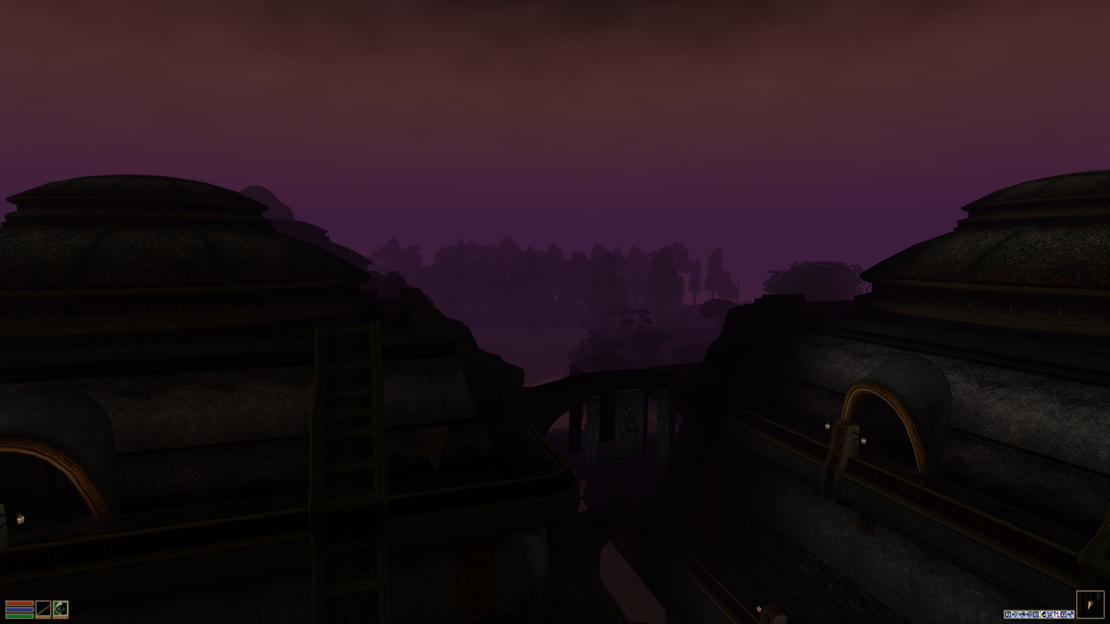 There was nothing for me to do at the colony, so I had to make the seemingly long trip from Ald'ruhn to Ebonheart, then magically to Mournhold. My recall amulet was sufficient to bring me back to Ald'ruhn, but I then had to go through the mind-numbing routine of bouncing from the Ald'ruhn Mages Guild to Vivec's, then walk across the water from the Foreign Quarter canton to the harbor town of Ebonheart.