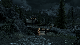 A few Septims poorer, Serana and I set foot on the opposite shore and continued along the mountainside. Taking the road to Riften is easier, but slower and I feel both of us are in agreement that the quicker this is over with, the better.